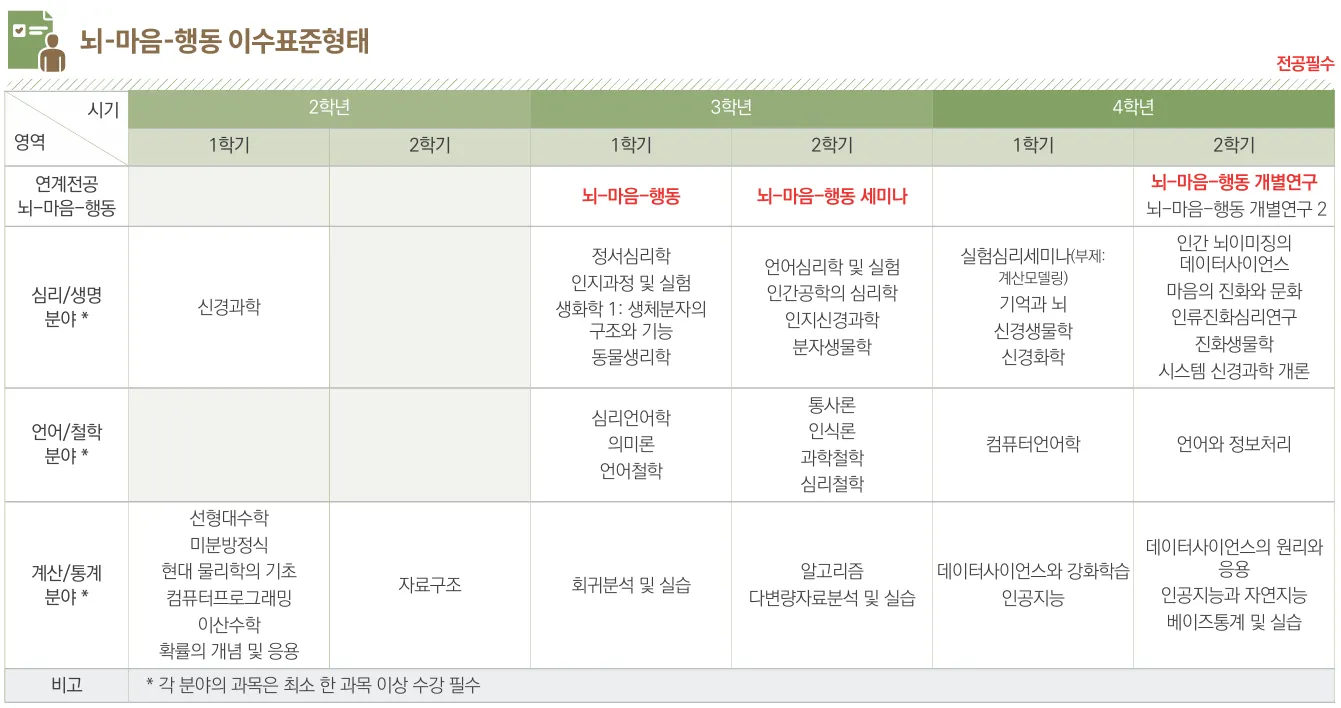 뇌-마음-행동의 통합적 이해를 위해, 심리학, 인지과학, 뇌신경과학, 생물학, 사회학, 계산과학, 철학, 언어학 등 다양한 분야에서 도전적이며 융합적인 연구를 수행하는 교수진이 참여하고 있다. 이를 통해 인간의 뇌, 마음, 행동에 대한 다양한 세부 주제를 탐구할 수 있는 교육기회를 제공하고 있다. 다양한 세부 주제의 예시로는, 정신질환에 관한 데이터사이언스, 의사결정의 계산적 접근, 중독에 관한 심리학적, 생물학적 이해, 인간공학 심리학과 인공지능 등이 있으며 이외에도 폭넓은 분야의 탐구가 가능하다.