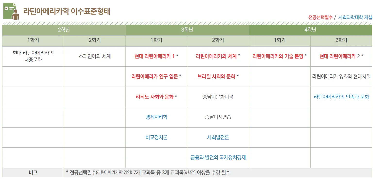 라틴아메리카학 영역 교과목 9학점 포함