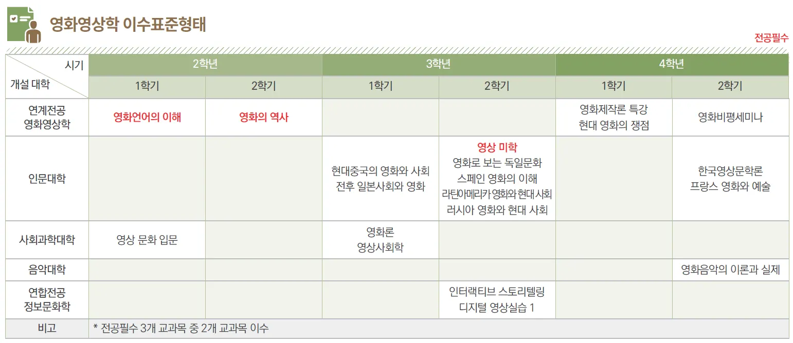영화영상학은 다양한 학문적 틀을 기반으로 영화를 다루는 만큼, 다양한 전공 과목들이 개설된다.